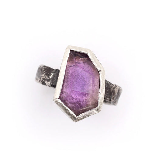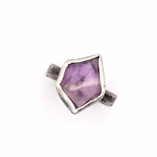 Amethyst Flat Rock Ring - Raw Amethyst on an oxidized silver band