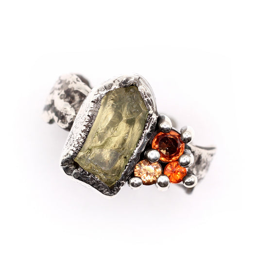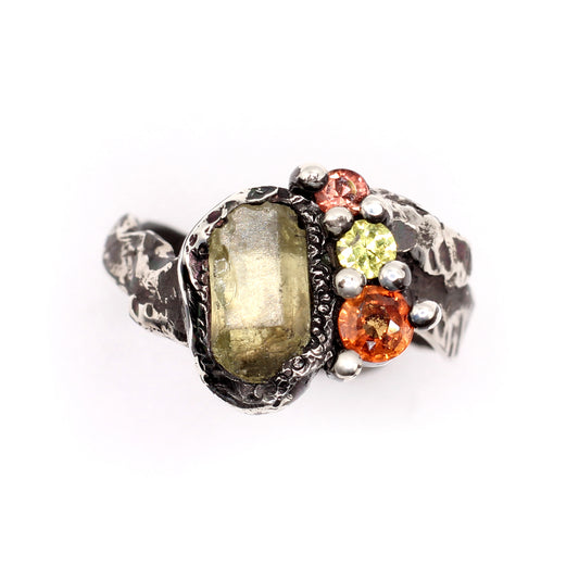 Christine Ring - Citrine and Sapphire Cluster ring in Oxidized Silver