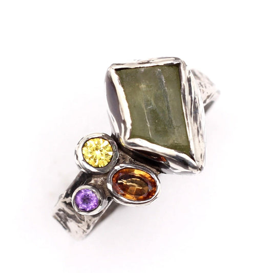 Candice Ring - Citrine, Sapphire and Amethyst Cluster with Textured Silver Band