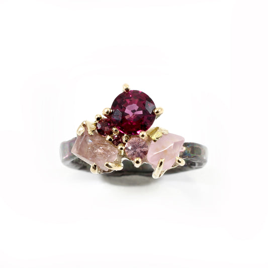 The Kate Ring - Garnet and sapphire cluster ring in textured gold and silver