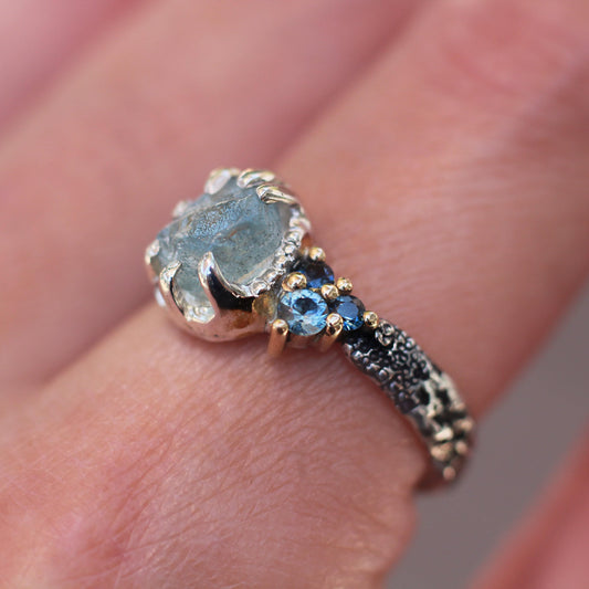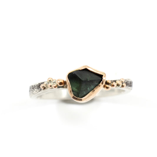 Sophie Sapphire Ring - A green blue sapphire ring in silver rose gold